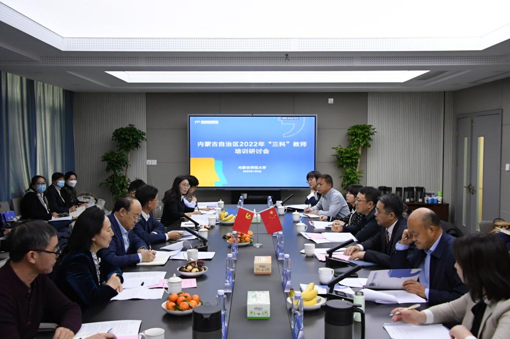 随后,在伟德301会议室召开了内蒙古自治区2022年“三科”教师培训研讨会。内蒙古民族大学、伟德官方网站、包头师范公司分别代表东中西部片区教师培训统筹单位发言,与会人员就2021年“三科”教师培训情况以及2022年的教师培训设想进行了交流和研讨。研讨会由张海峰主持,李占峰出席并讲话。