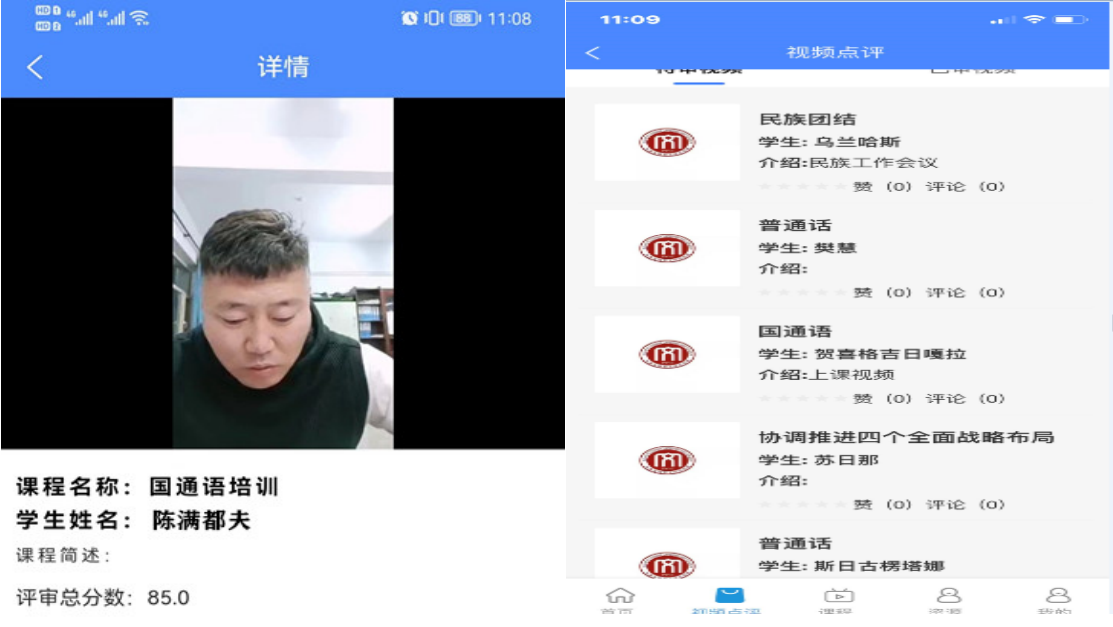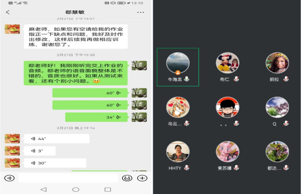 就返岗伴学阶段的培训内容而言,主要分为组织教学用语规范(导入用语、展开用语、小结用语、活动用语)、互动交流用语规范(提问用语、回答用语、解疑用语、引导用语)和研讨用语规范(课题呈现、课题阐发、课题讨论)。在培训中,具体使用本科生教学技能训练的专用平台,把培训训练环节分解到手机“萌师apk”,同时,充分利用喜马拉雅、腾讯会议、微信等平台进行国通语练习,通过富有创意的教学手段丰富培训形式,提升培训效果,受到参训教师的好评。
