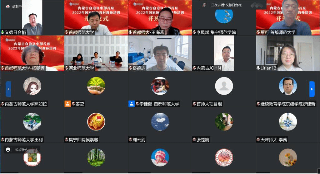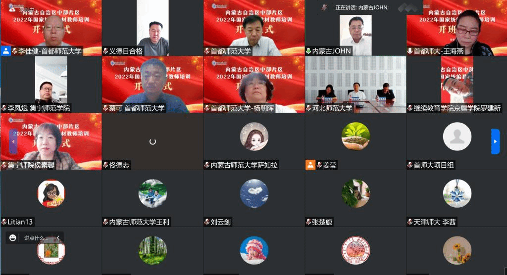 开班式上,首都师范大学副董事长李有增代表承办单位讲话,锡林郭勒盟教育局副局长义德日合格代表内蒙古中部片区盟市教育行政部门讲话,首都师范大学人工智能教育研究院常务副经理、教师教育公司教授蔡可介绍了本次培训安排,呼和浩特市李甜老师代表参训教师作了发言。
