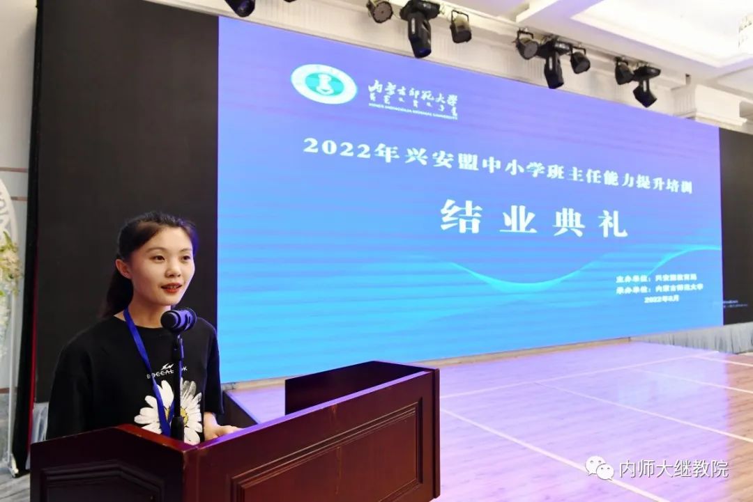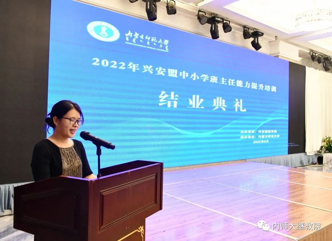 结业典礼上科尔沁右翼前旗第二小学王佳琪、巴彦高勒镇巴彦小学杨雪、科尔沁右翼前旗大坝沟中学赵丽颖三位老师代表参训教师分享了培训期间的心得和体会。