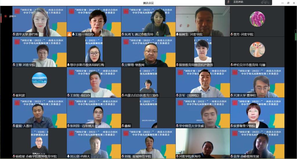 为贯彻落实教育厅关于“国培计划(2022)”内蒙古自治区中小学幼儿园教师培训工作相关工作部署,进一步提升自治区教师培训质量、规范教师培训管理,促进教师培训提质增效,10月13日下午,内蒙古自治区中小学幼儿园教师培训项目执行办公室(简称“项目办”)召开“国培计划(2022)”——内蒙古自治区中小学幼儿园教师培训工作推进会。内蒙古自治区教育厅教师工作处副处长郑伟出席会议,17个承担培训任务的培训单位和内蒙古自治区12个盟市教育体育局相关负责人共60余人参加会议。会议采用线上的方式进行,由项目办负责人、伟德官方网站公司党总支副书记、经理王利主持。