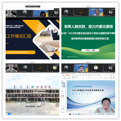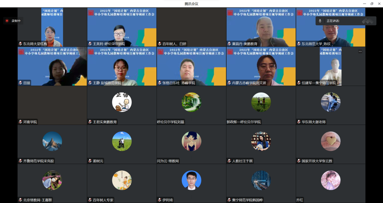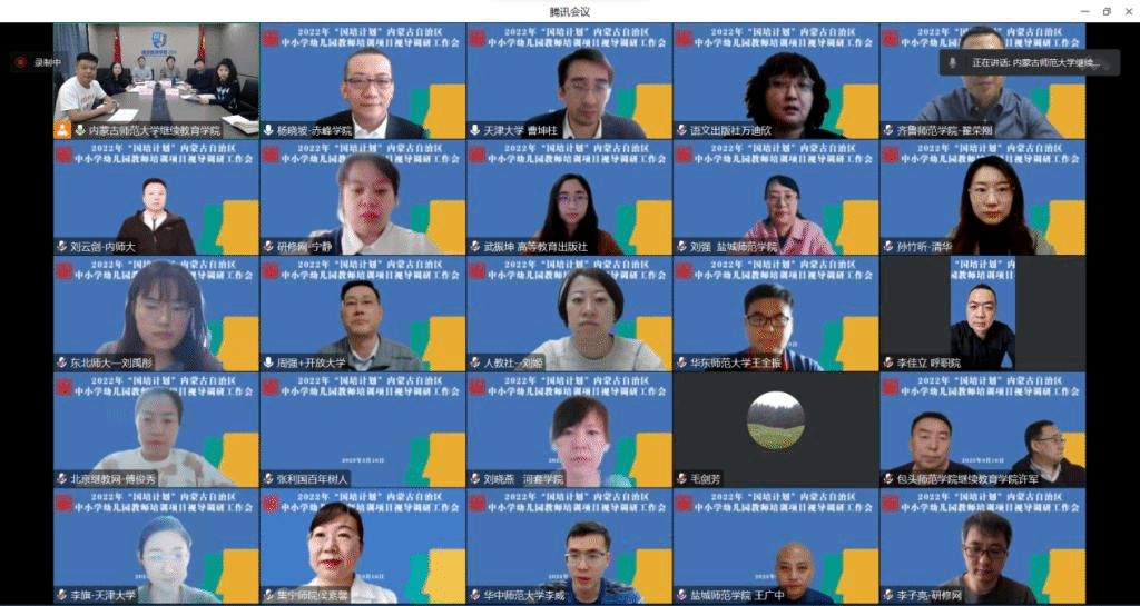 22家承办单位分别汇报了所承担的2022年内蒙古自治区“国培计划”教师培训项目的实施进度和实施情况。