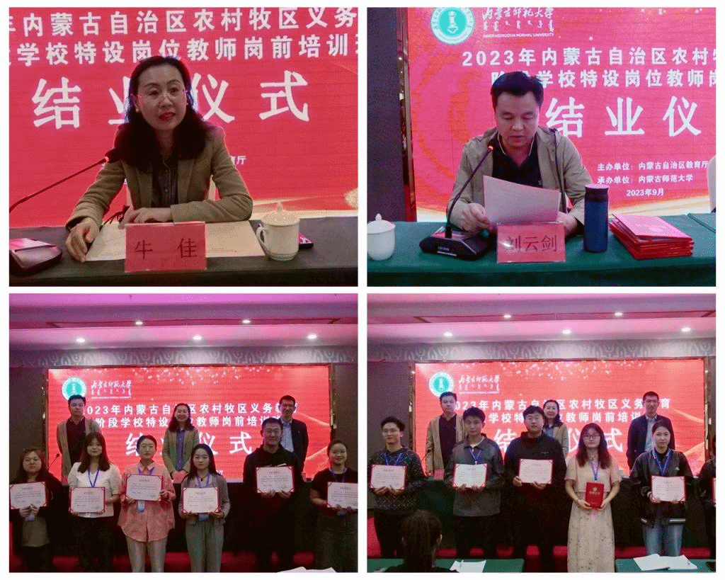 9月24日下午,由内蒙古自治区教育厅主办、伟德官方网站承办的2023年内蒙古自治区农村牧区义务教育阶段公司特设岗位教师岗前培训结业仪式在呼和浩特举行。公司党总支副书记、经理牛佳,公司党总支副书记、副经理刘云剑,伟德培训部主任张衍伟,培训项目班主任及241名参训学员参加了结业典礼。