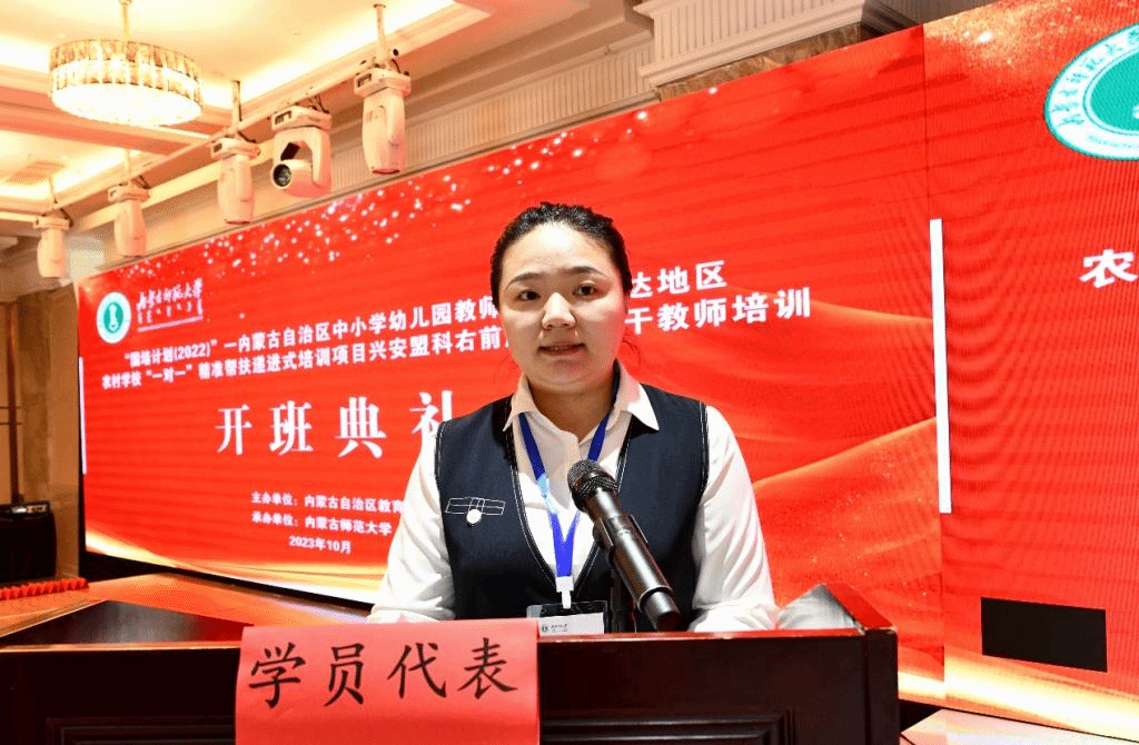 秋风送爽,万物飘香。10月14日上午,公司助力乡村教育培训项目——“国培计划(2022)”内蒙古自治区欠发达地区农村公司“一对一”精准帮扶递进式培训项目兴安盟科右前旗初中骨干教师培训在维也纳大酒店金色大厅举行了开班仪式。本项目由自治区教育厅主办、伟德官方网站承办、伟德具体组织实施。兴安盟科右前旗教育局党组成员副局长张静媛、人事团队股李娜,公司公司党总支副书记经理牛佳、副经理付丽和、高师培训中心主任高丽桃、培训部副主任陈毕力格以及科右前旗300位初中骨干教师参加了开班仪式。开班仪式由付丽和副经理主持。