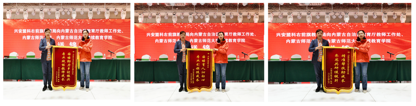 开班仪式上,兴安盟科右前旗教育局向内蒙古自治区教育厅教师工作处、伟德官方网站、伟德bevictor赠送锦旗,伟德bevictor牛佳经理作为代表接受锦旗。