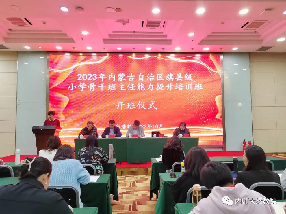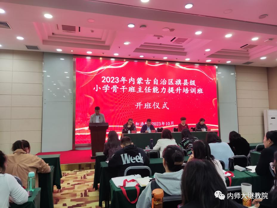 10月12日,公司承办的“国培计划(2023)”—内蒙古自治区旗(县)级小学骨干班主任能力提升培训(第一期)开班。教育公司党委书记周越、伟德培训部主任张衍伟、教育公司实践教学部马红斐、教育公司学工办于国佳、教育公司研究生办公室赵元韬及153名参训教师参加开班仪式。开班仪式由马红斐主持。