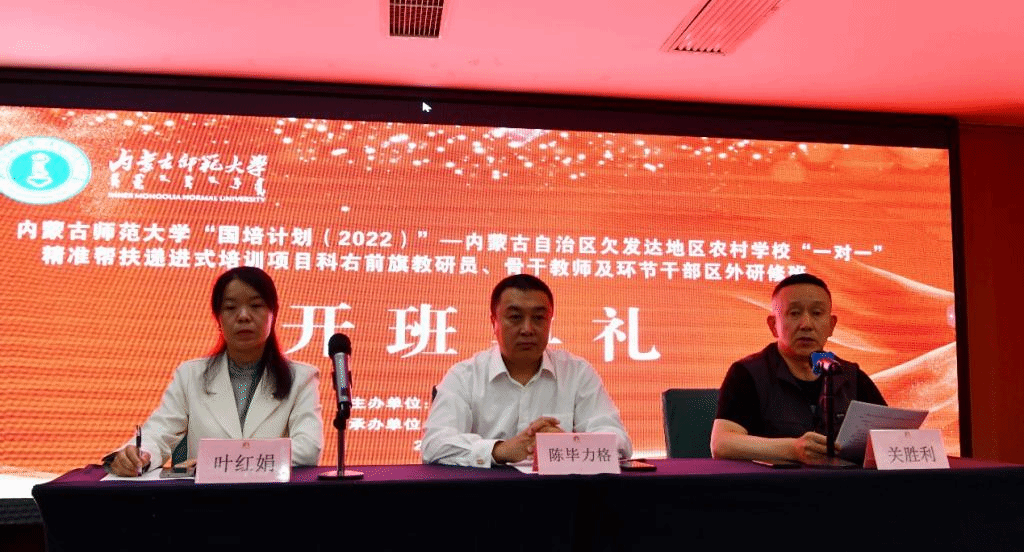 “国培计划(2022)”—内蒙古自治区欠发达地区农村公司“一对一”精准帮扶递进式培训项目包括两个子项目:6天600人的中小学骨干教师培训和7天80人的教研员、骨干教师及环节干部区外研修。