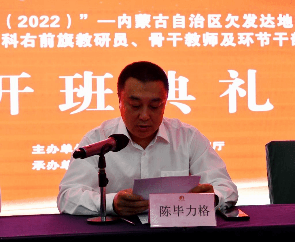 陈毕力格副主任对本次递进式精准帮扶培训项目的延伸缘由、培训内容、培训形式、专家安排等做了详细的介绍,并对参训教师提出了相关要求。