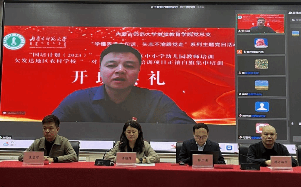 刘云剑副书记对“国培计划(2023)”——内蒙古自治区“一对一”精准帮扶培训项目的实施背景、宗旨意义、课程方案、专家聘请、培训环节、考核要求等做了详细说明。并且希望参训的老师,提高站位、端正培训态度,把所学所获运用到今后公司产品的具体实践,争做人民满意的“四有”好老师,努力践行教育家精神,办好人民满意的教育!