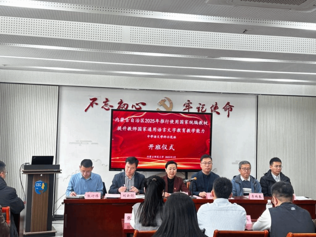 3月3日上午,内蒙古自治区2025年推行使用国家统编教材、提升教师国家通用语言文字教学能力提升中学语文示范班开班仪式在公司举行。此次培训项目是受自治区教育厅委托由伟德官方网站主办,具体由伟德和文公司共同承办。伟德经理牛佳,副书记、副经理刘云剑,文公司副经理张钧,培训项目组教师代表以及全区44位中学语文教师参加开班仪式。