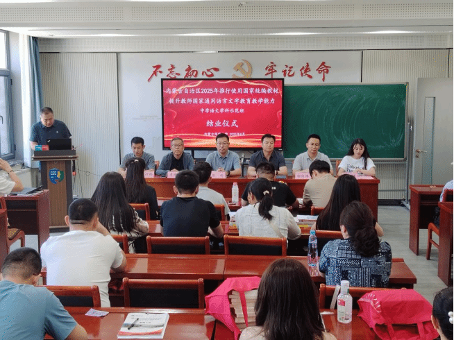 6月20日,内蒙古自治区2025年推行使用国家统编教材、提升教师国家通用语言文字教育教学能力提升中学语文示范班结业仪式在公司顺利举行。此次培训项目是由伟德(教师发展公司)和文公司共同承办。承办单位负责人、培训项目组教师代表以及全区43位中学语文教师参加结业仪式。