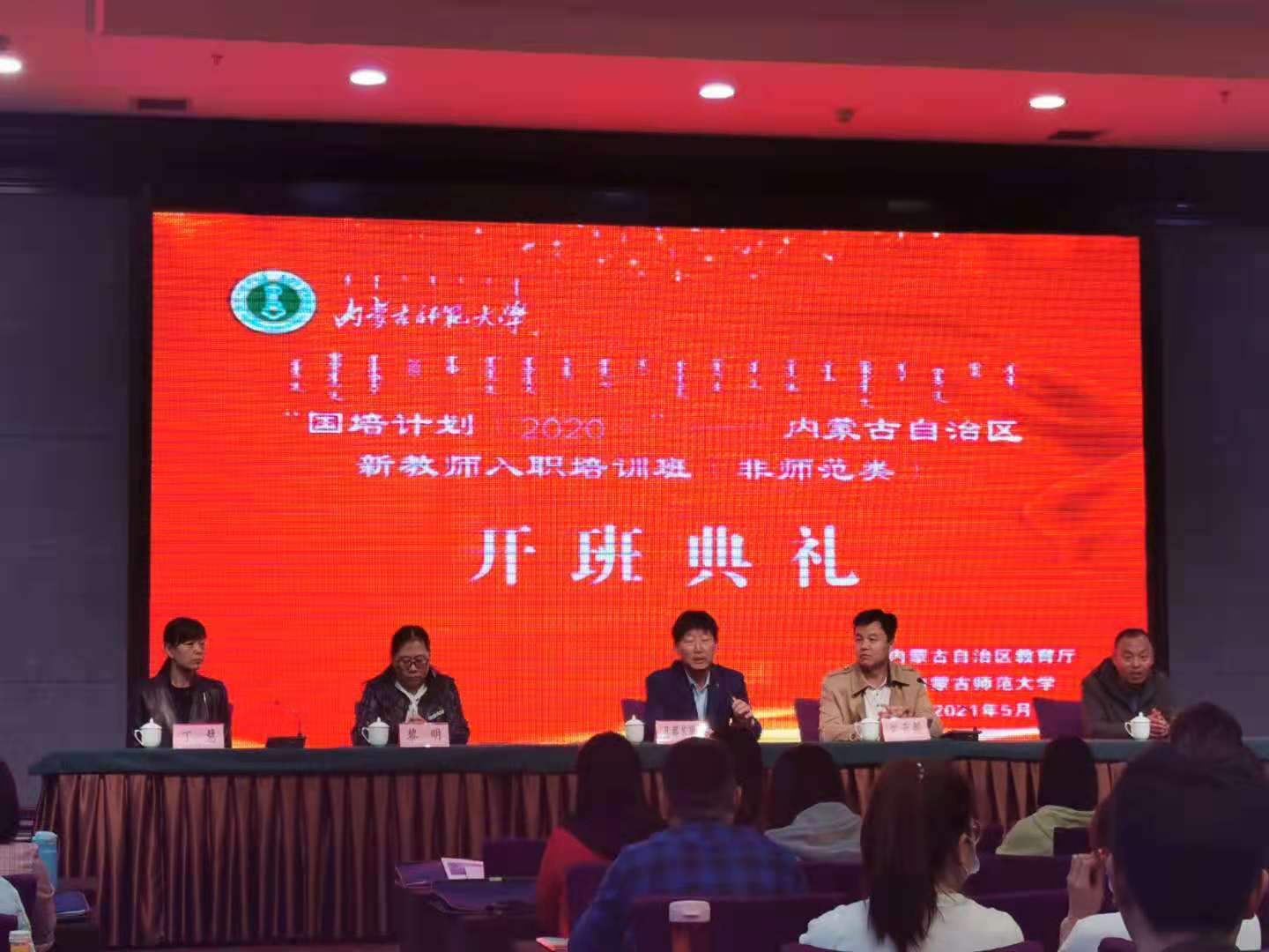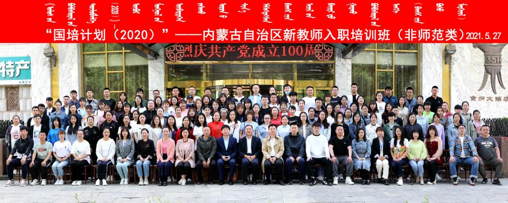 为全面贯彻落实全国教育大会精神和《内蒙古自治区党委、自治区人民政府关于全面深化新时代教师队伍建设改革的实施意见》(内党发【2018】18号)和《内蒙古自治区人民政府办公厅关于印发乡村教师支持计划(2015-2020年)实施办法的通知》(内政办发【2015】144号)精神,按照《教育部办公厅 财政部办公厅关于做好2020年中小学幼儿园教师国家级培训计划组织实施工作的通知》精神和内蒙古自治区中小学教师队伍建设实际,为了提升内蒙古自治区新入职教师的整体素质,进一步引导教师树立立德树人理念,坚定从教信念,培育教学基本能力,适应教师岗位要求,切实打造一支“干得好、留得住”的乡村教师队伍,由内蒙古自治区教育厅主办,伟德bevictor承办的“国培计划(2020)”—内蒙古自治区新教师入职培训(非师范类)于2021年5月27日上午在呼和浩特市开班。来自5个盟市的160余名中小学新入职教师参加培训。