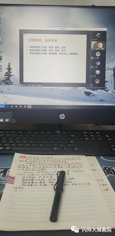 虽然隔着屏幕学习,参训的初中党组织书记们仍保持着积极高涨的学习热情,在课堂上认真听讲、认真记录笔记,汲取奋进力量,不断提升自身素养。