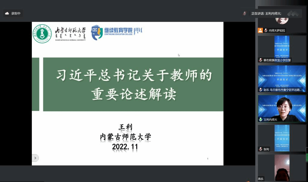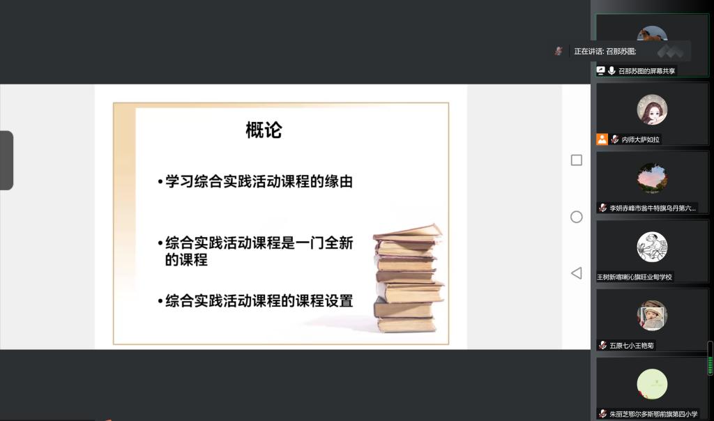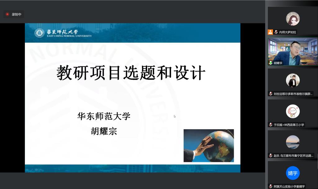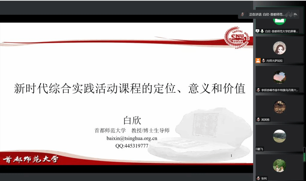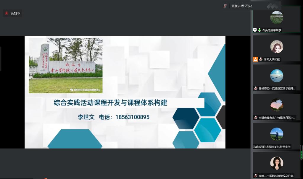 本次线上集中授课阶段于11月20日至25日之间进行,期间邀请了华东师范大学教育公司胡耀宗教授、首都师范大学初等教育公司白欣教授、北京师范大学基础教育公司杨培禾教授、青岛综合实践教育集团总校董事长聂麦花、呼和浩特市南马路集团小学董事长刘建英等十二位区内外知名专家、知名小学董事长、教研员和一线教师,以专题讲座的形式先后讲授“习近平关于教师的重要论述”“铸牢中华民族共同体意识”“新时代综合实践活动定位、意义与价值”“新时期综合实践活动教学策略”“基于《纲要》的综合活动课实施”“新时代小学劳动教育的新思考”“研习旅行课程设计与实施”“小学综合实践课教学研究方法”“《劳动教育课程标准》解读与实施”“小学综合实践课程体系解析”“综合实践活动课程开发实施策略”“素养背景下的小学综合实践课程高效性实践”等十二个专题。