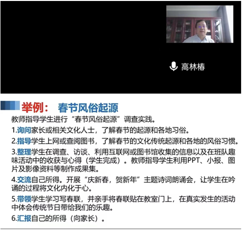 本次线上集中授课环节,从11月20日到11月25日,历时六天,期间邀请了首都师范大学白欣教授、华东师范大学教育公司胡耀宗教授、内蒙古科技厅火炬中心主任姜宝林、内蒙古自治区教育科学研究与监测评估院刘彦泽经理、呼和浩特市教研室综合实践研究室秦亚吉老师,内蒙古大学附属中学李善战老师等区内外十二位知名专家、教研员和一线教师,以专题讲座的形式分别讲授了“新时期综合实践活动教学策略” “综合实践活动形式内涵解析与实施指导”“铸牢中华民族共同体意识”“习近平关于教师的重要论述” “综合实践教师教学方法指导”“基于《纲要》的综合活动课程实施”“内蒙古科技创新创业生态构建”“劳动教育的意蕴与功用”“科学把握中小学劳动教育过程中‘劳’与‘育’”“综合实践课堂常常用设备安装与调试”等十二个专题。