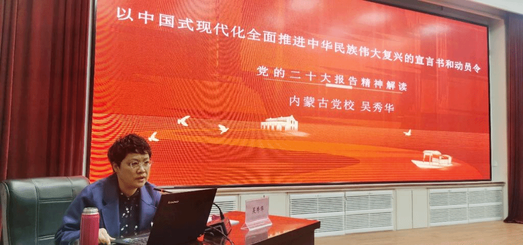 开班仪式结束后,内蒙古党校吴秀华教授作了《以中国式现代化全面推进中华民族伟大复兴的宣言书和动员令——党的二十大精神解读》的专题讲座。