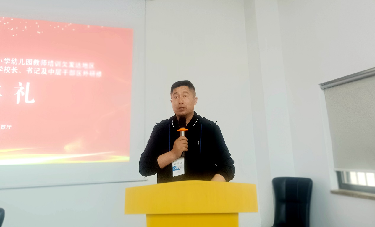 陈毕力格副主任在讲话中对本次区外研修班的实施背景、宗旨意义、课程方案、专家聘请、培训环节、考核要求、安全管理等做了详细说明并加以强调,对培训学员提出三点要求:一是要及时转换角色,积极参与培训,认真反思交流,增强学习动力;二是认真借鉴先进地区教育的教学和管理理念,提升自己公司的治校管理水平和能力,达到培训目标;三是学以致用,迁移转化培训收获。