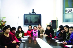 11月28日下午,内蒙古农业大学幼儿园例行的业务研讨会上,来自乌拉特前旗幼儿园的王嘉敏和另外11名脱产研修教师,一起和农大幼儿园教师分析探讨当天教学总结。