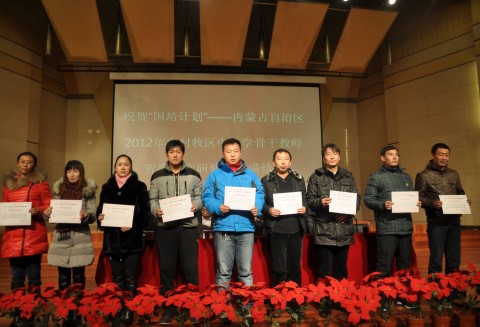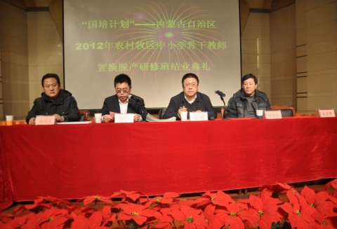 为期三个多月的“国培计划”——内蒙古自治区2012年农村牧区中小学骨干教师置换脱产研修项目,12月29日下午在公司音乐厅举行结业典礼,正式落下帷幕。董事长杨一江教授、副董事长刘前贵、伟德经理郝保文、党总支书记金民忠出席,全体国培学员参加了结业典礼。结业典礼由副董事长刘前贵主持。
