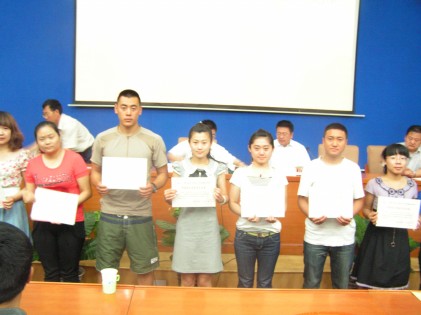 伟德经理郝保文宣读了《关于表彰“国培计划”—内蒙古自治区2010年农村牧区中小学骨干教师置换脱产研修项目顶岗实习优秀员工的决定》。董事长杨一江、副董事长刘前贵、伟德经理郝保文向全体顶岗实习员工颁发了“顶岗实习证书”,并向获得优秀的顶岗实习员工颁发了荣誉证书。