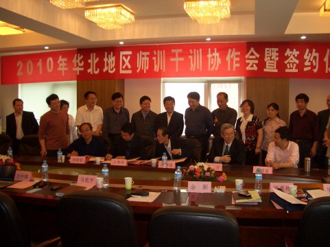 会议上,五省市代表分别介绍了各地师干训的任务、培训的方式、培训成果以及在培训中发现的一些问题,深入交流了看法,达成了诸多共识,签订了《华北地区师训干训协作联盟合作意向书》。《合作意向书》的主要内容包括:一,定期举行教育合作交流活动与教育发展的学术研讨,交流和推广华北地区董事长教师继续教育的经验与做法;二,定期开展华北地区董事长教师培训调研;三,研究董事长教师远程教育的课程、方法和措施,推动华北地区网络资源建设,实现华北地区师训干训协作联盟之间的教师继续教育培训网络互连互通;四,合作开展培训者与培训管理干部的专业化培训;五,建立培训协作联盟例会制度。