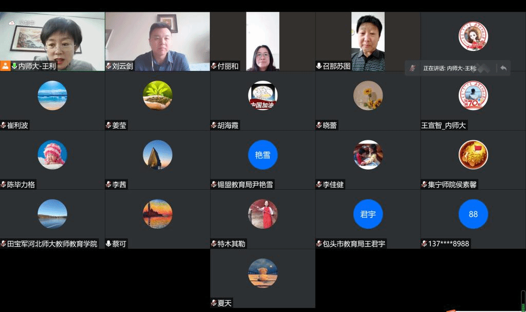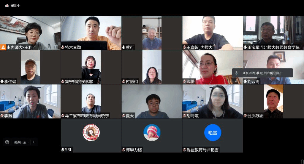首都师范大学人工智能教育研究院副经理蔡可解读了内蒙古中部片区2022年国家统编教材教师培训实施方案,各协同高校、中部片区各盟市教育局团队科负责人对培训实施方案进行了深入沟通和讨论,从培训时间、培训形式、培训内容、培训过程、培训人数和层次等不同角度提出了完善培训实施方案的意见和建议。