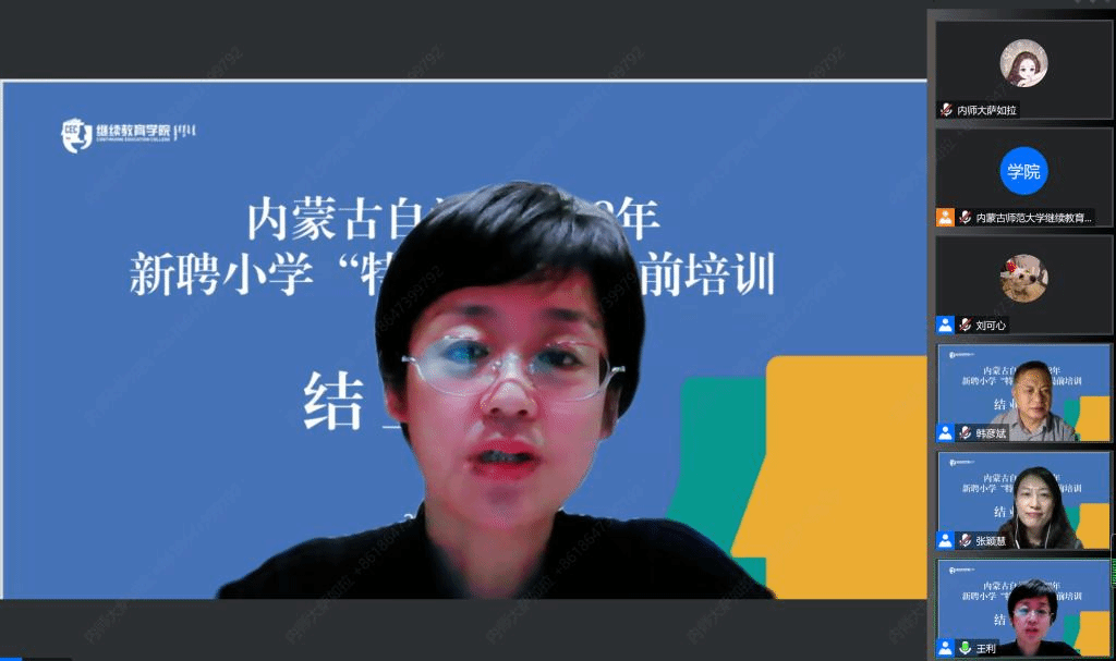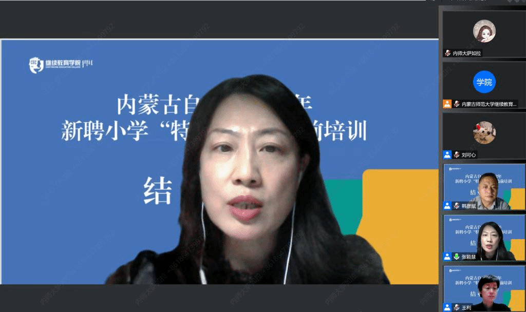 结业仪式上,内蒙古自治区中小学幼儿园教师培训项目执行办公室负责人,伟德官方网站公司党总支副书记、经理王利讲话。她首先代表伟德向呼和浩特市公司产品研究中心教研员团队和本次培训项目管理者团队表示衷心地感谢。王利表示,做好“特岗教师”岗前培训工作,从宏观说,是自治区贯彻落实《中共中央国务院关于全面深化新时代教师队伍建设改革的意见》的重要举措,也是加强新时代教师队伍建设,巩固拓展脱贫攻坚成果,全面推进乡村振兴的一项重要任务。微观上,从教师个人的自身发展来说,是教师职业生涯开启之初的培训,对于教师个人专业能力和专业素养的提升具有重要的奠基作用。本次特岗教师岗前培训时间长,系统性强,环节比较多,在教研员老师的大力支持、参训学员的积极参与和培训管理者团队的共同努力下,圆满完成了各项培训任务。王利在讲话中向参训教师他们提出希望,希望参训教师能积极转化和迁移培训收获,把培训所学、所得、所获运用到工作实践中去,实现学以致用,提质增效,实现培训助力教师专业成长和发展的目标,同时希望参训教师能保持培训学习共同体的良好状态,持续联系和分享,通过后期不断的学习与提升,共同实现更大的教育价值,为促进自治区基础教育高质量发展做出应有贡献。王利在最后向各位参训教师发出邀请,希望参训教师能以员工的身份回到伟德官方网站,为教师培训工作献言献策,助力师大培训事业的建设与发展。