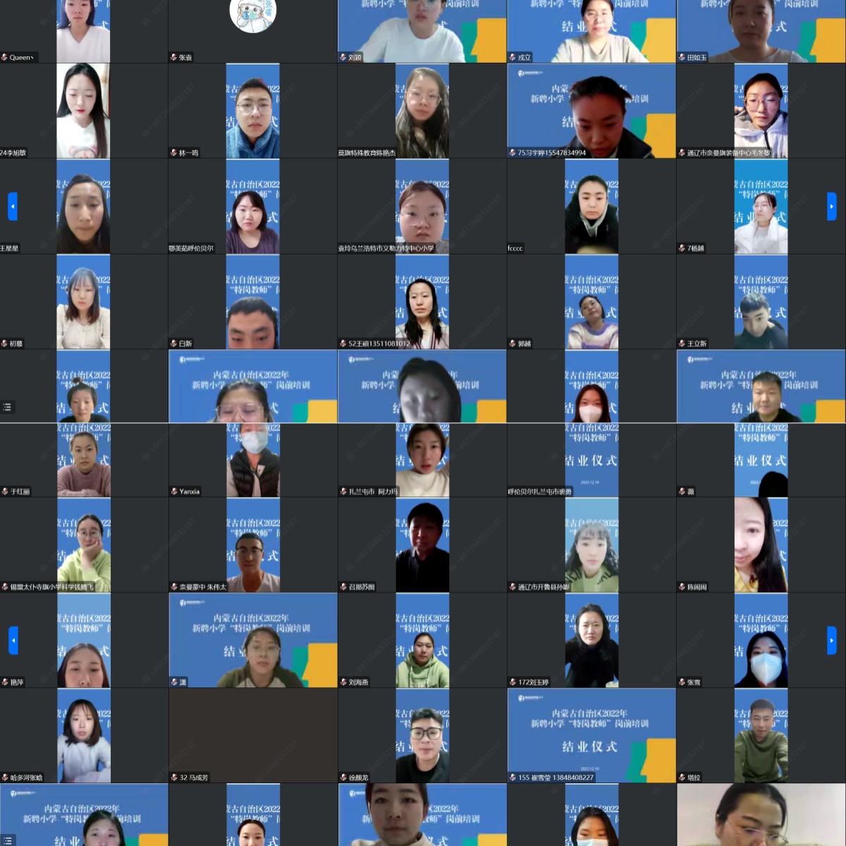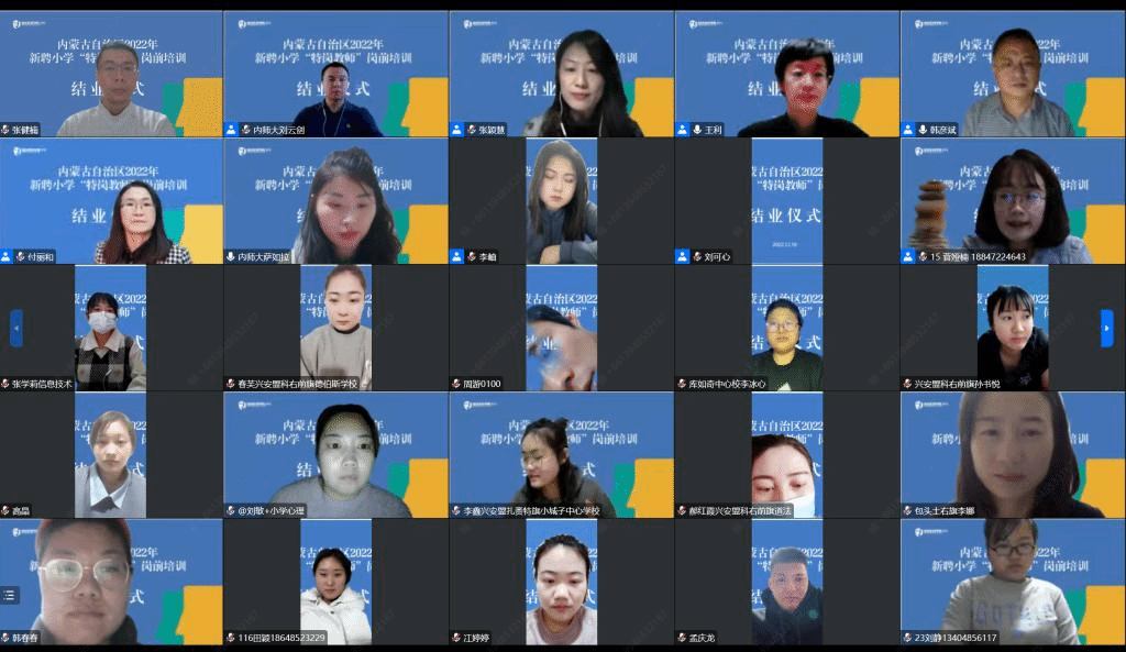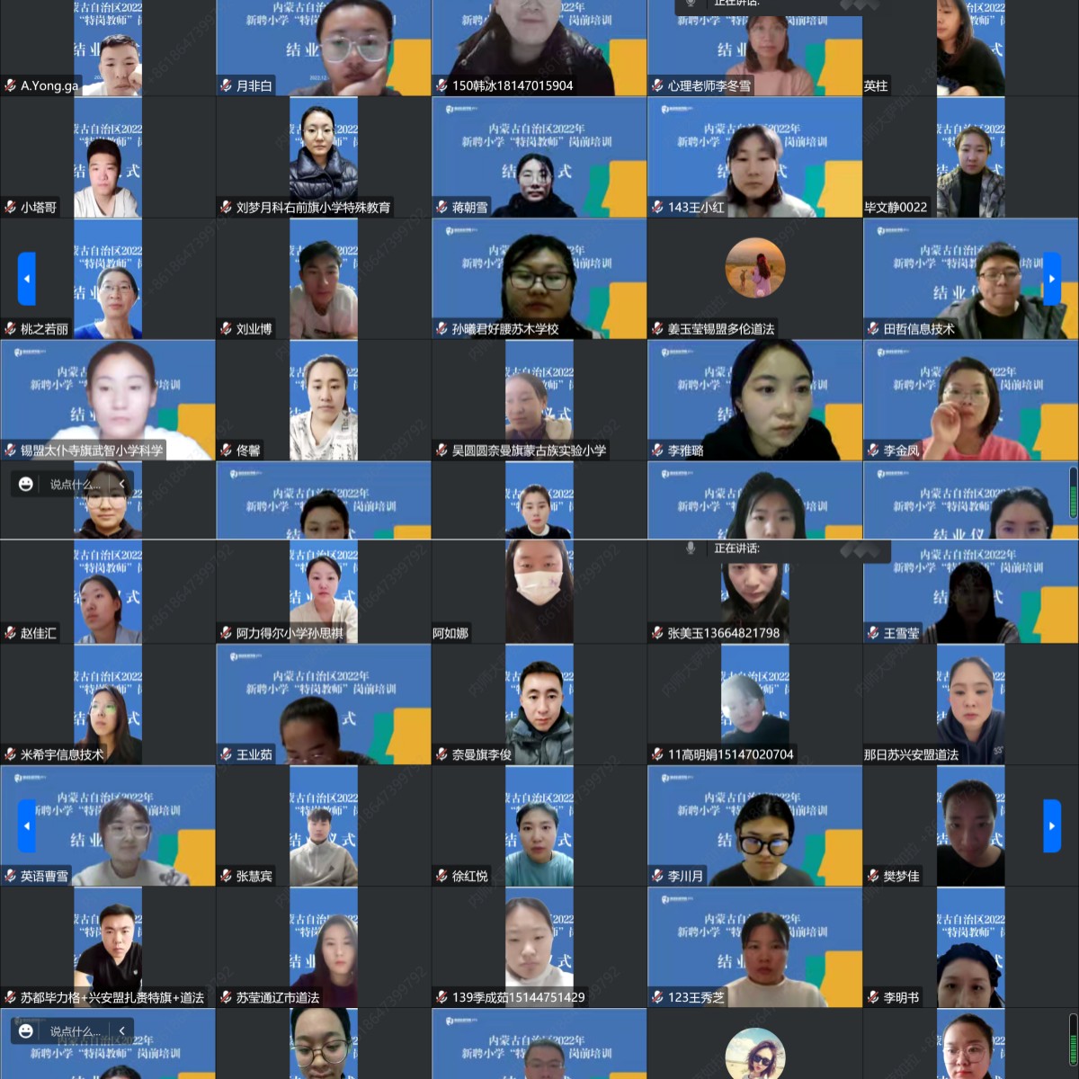 12月19日下午,由公司承办的内蒙古自治区2022年新聘小学“特岗计划”教师岗前培训圆满结业。呼和浩特市公司产品研究中心小学语文教研员张颖慧老师,内蒙古自治区中小学幼儿园教师培训项目执行办公室负责人,伟德官方网站公司党总支副书记、经理王利,副书记、副经理刘云剑,副经理付丽和,副经理召那苏图出席结业仪式。结业仪式由伟德官方网站公司党总支书记韩彦斌主持,本次培训班班主任及600多名新聘小学特岗教师参加了结业仪式。