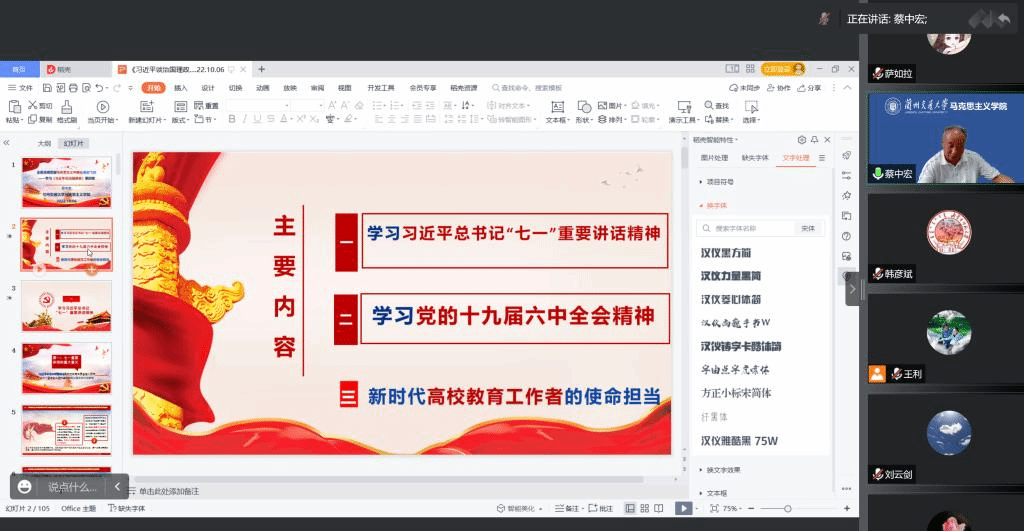讲座中,蔡中宏教授从“学习习近平总书记‘七一’重要讲话精神”“学习党的十九届六中全会精神”“新时代高校教育工作者的使命担当”三个方面,对《习近平谈治国理政》第四卷进行深入讲解。通过讲座专家通俗易懂、逻辑严密的讲解,大家加深了对《习近平谈治国理政》第四卷重大意义的认识。