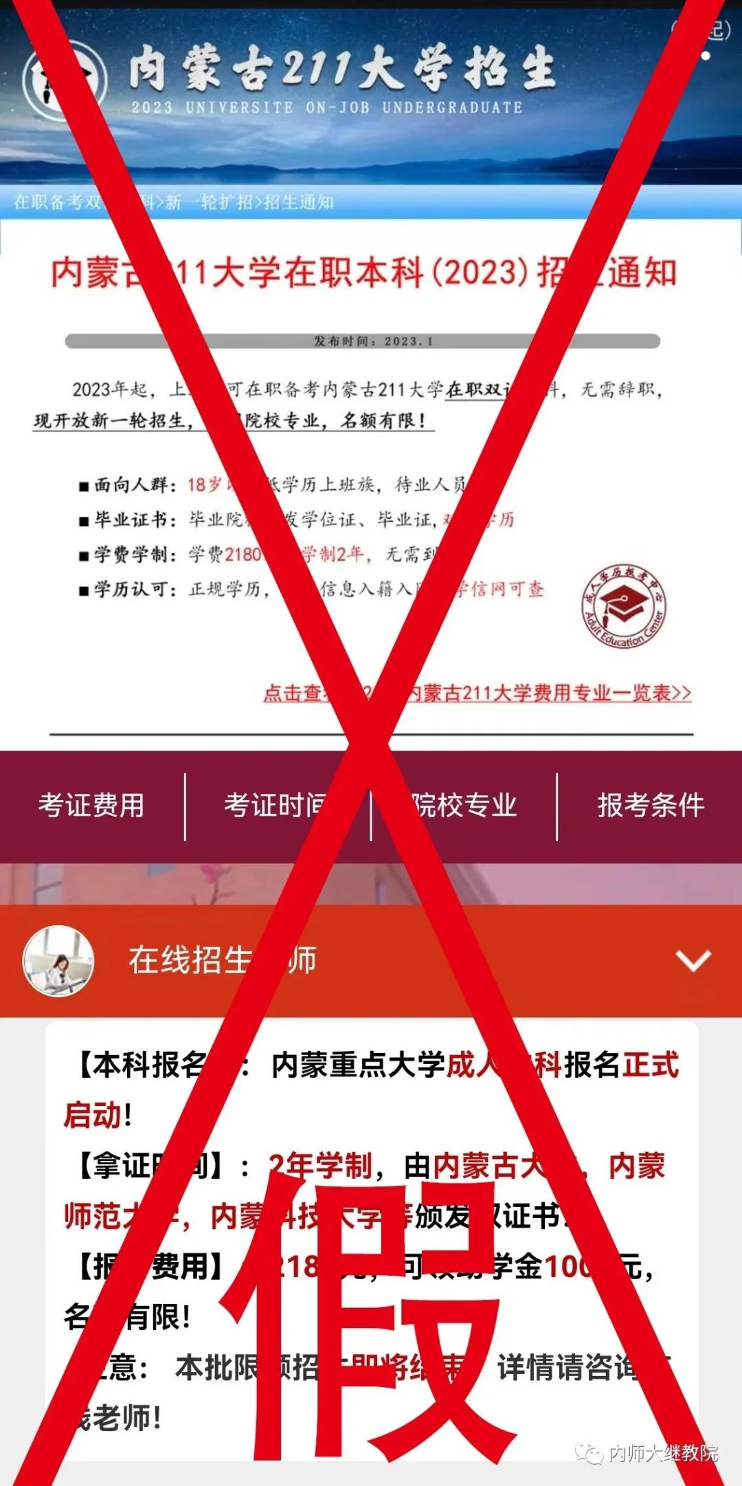 近年来,一些新媒体网络平台上发布有关伟德官方网站成人教育不实招生宣传广告。伟德官方网站成人教育招生信息仅通过“内蒙古自治区招生考试信息网”发布,未通过其他网络平台开展成人教育招生相关宣传工作,也从未委托任何第三方开展成人教育招生工作,请广大网友注意甄别虚假信息,维护好自身权益。
