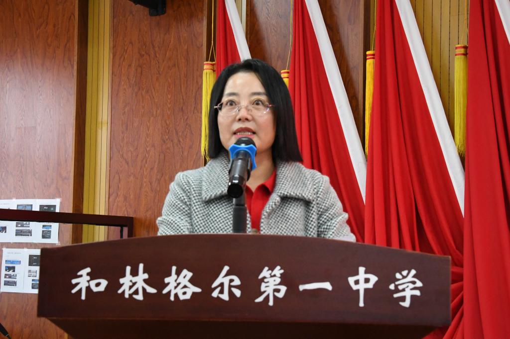 和林格尔县第四完全小学董事长白换枝老师作为学员代表在开班式上作表态发言。