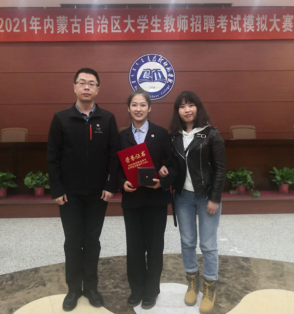 2021年4月28日,伟德组建代表队,由学工办负责人兼班主任萨如拉、团总支负责人张健楠两名老师与张蒙同学一同赴包头师范公司参加复赛。通过结构化面试的复赛形式,张蒙同学以优异的成绩顺利进入决赛。决赛在内蒙古大学、伟德官方网站、包头师范公司、内蒙古民族大学、赤峰公司等几所高校选派的选手之间进行。通过精彩流畅的试讲、说课竞赛,最终张蒙同学获得学前组第二名。